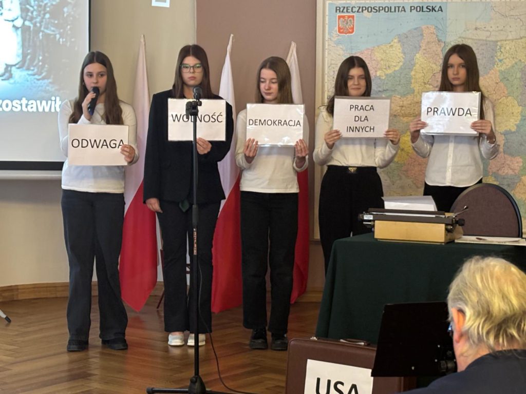 Szczególnym punktem programu był wykład prof. UAM pana Pawła Stachowiaka, który przybliżył uczniom bogatą i niezwykle ważną działalność Stanisława Mikołajczyka.